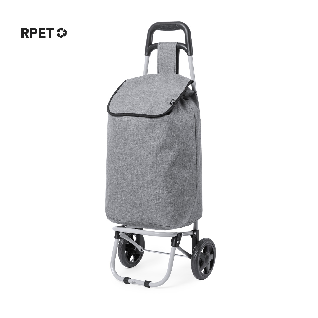 Carro de compra dobrável e línea nature. Fabricado em resistente poliéster 600D RPET, feito a partir de plástico reciclado, para promover a reutilização de resíduos plásticos e ajuda na sustentabilidade do planeta. Com pega reforçada, corpo metálico tubular, bolso traseiro com fecho de correr e suportes com borrachas de proteção. Rodas reforçadas de alta qualidade. Etiqueta distintiva RPET na aba. Dobrável