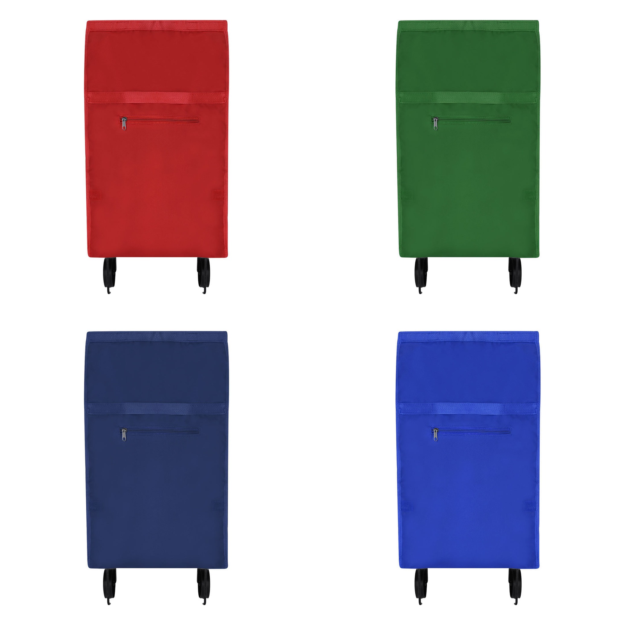Carrinho de compras dobráveis em poliéster 600D resistentes, em variação variada em tons brilhantes. Com alças de nylon reforçadas com cores correspondentes, o bolso com zíper frontal de cores combinando e suporte de metal. Pequeno tamanho dobrável. Dobrável