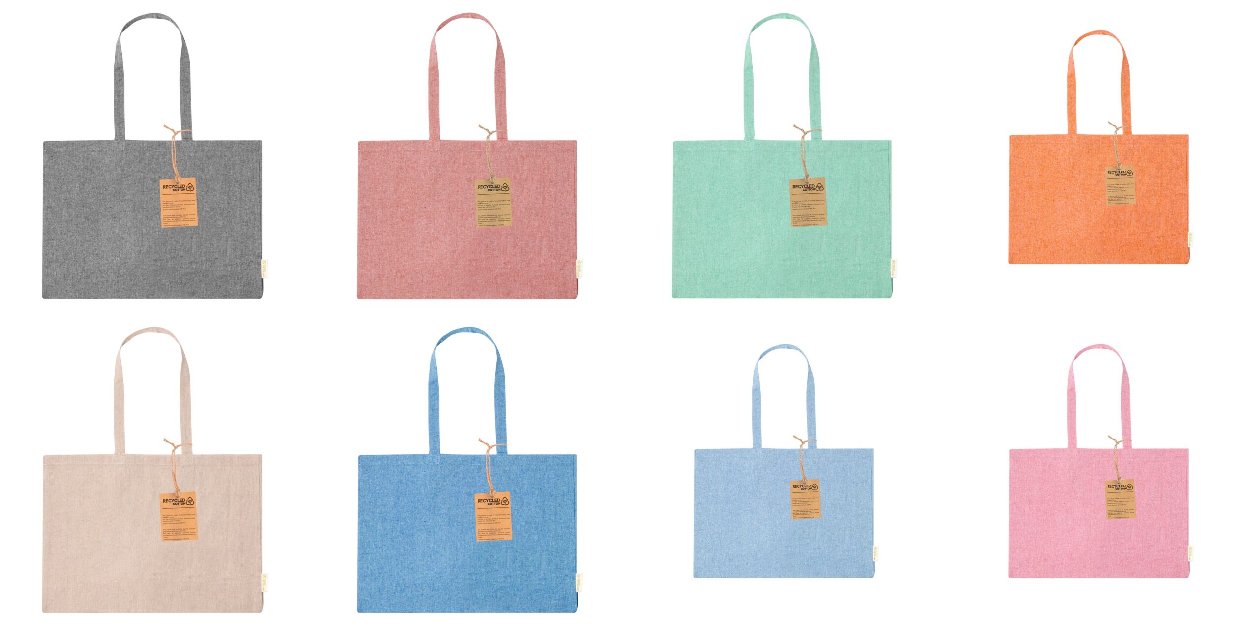 Saco fabricado em algodão reciclado de elevada gramagem 220g/m2. De acabamento cosido e com asas compridas reforçadas. Com fole e disponível em variadas cores. Logotipo algodão reciclado na etiqueta exterior. Resistência até 9 kg de peso.