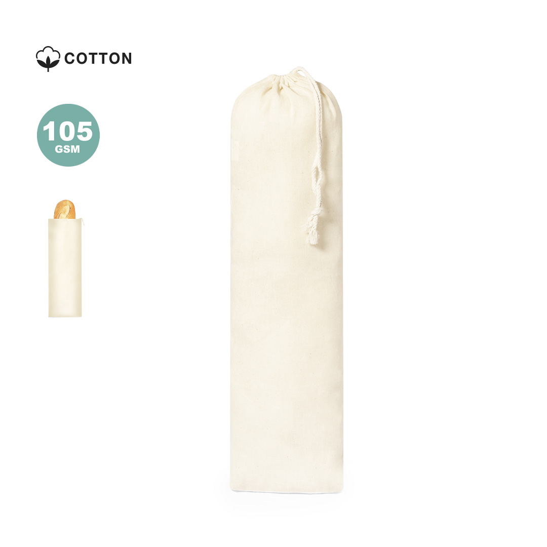 Saco de pão em material 100% algodão natural com fecho de cordão a condizer. Acabamento costurado.