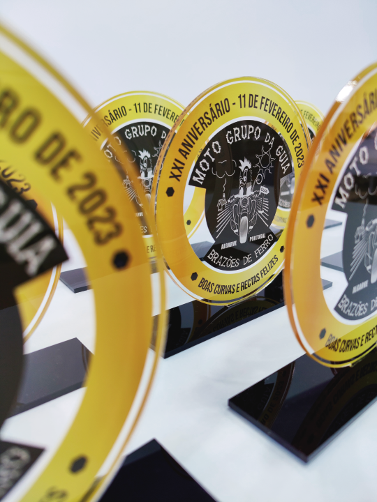 Troféu em acrílico cristal transparente, personalizável em impressão UV